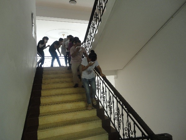 上午9點(diǎn)30分,演練正式開始:公司辦公樓一樓大廳意外起火,濃煙四起,消控中心發(fā)現(xiàn)火情后立刻向安全生產(chǎn)負(fù)責(zé)人匯報情況,安全生產(chǎn)負(fù)責(zé)人收到火情后第一時間啟動消防應(yīng)急預(yù)案,通知滅火行動組人員趕赴現(xiàn)場控制火情,并通知疏散引導(dǎo)組迅速組織辦公樓內(nèi)所有人員逃生。疏散引導(dǎo)組組長接到指令后,馬上通知辦公樓內(nèi)所有員工向辦公樓外撤離,安撫員工情緒,提醒大家用濕毛巾掩住口鼻,弓身沿樓梯扶手排成一列有序向外疏散逃生。