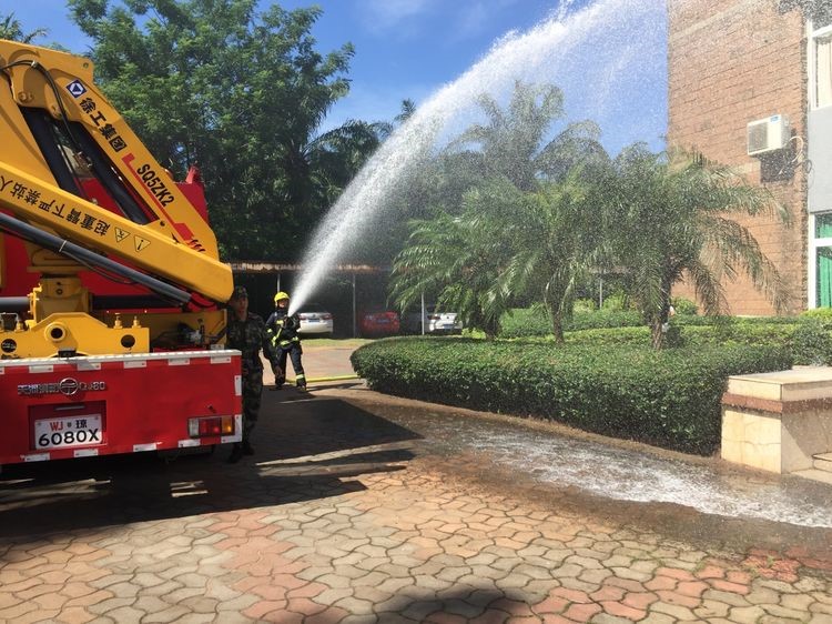 9點(diǎn)40分,金盤消防中隊(duì)2輛消防車和9名消防官兵抵達(dá)現(xiàn)場,迅速展開滅火和救援行動。在消防官兵的奮勇?lián)岆U下,火情迅速得到了控制,并被徹底撲滅,被困員工也被安全救出,演練就此結(jié)束。