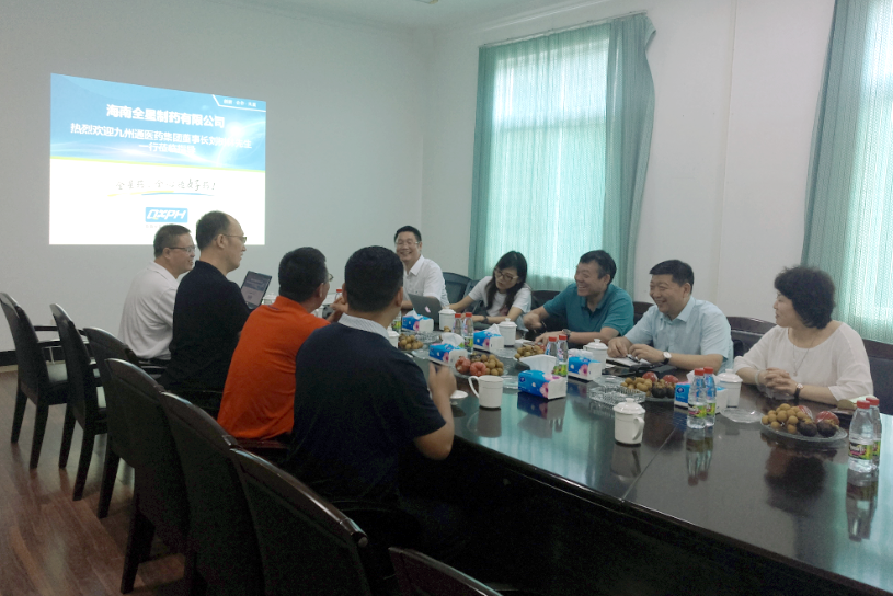 2018年0725日,九州通醫(yī)藥集團(tuán)董事長劉樹林先生一行蒞臨海南全星制藥有限公司調(diào)研并指導(dǎo)工作。全星制藥董事長劉全勝先生攜公司領(lǐng)導(dǎo)班子一同參加了座談會,并對劉樹林先生一行的到來表示熱烈的歡迎。雙方就企業(yè)的發(fā)展愿景及醫(yī)藥行業(yè)的發(fā)展前景展開了討論。