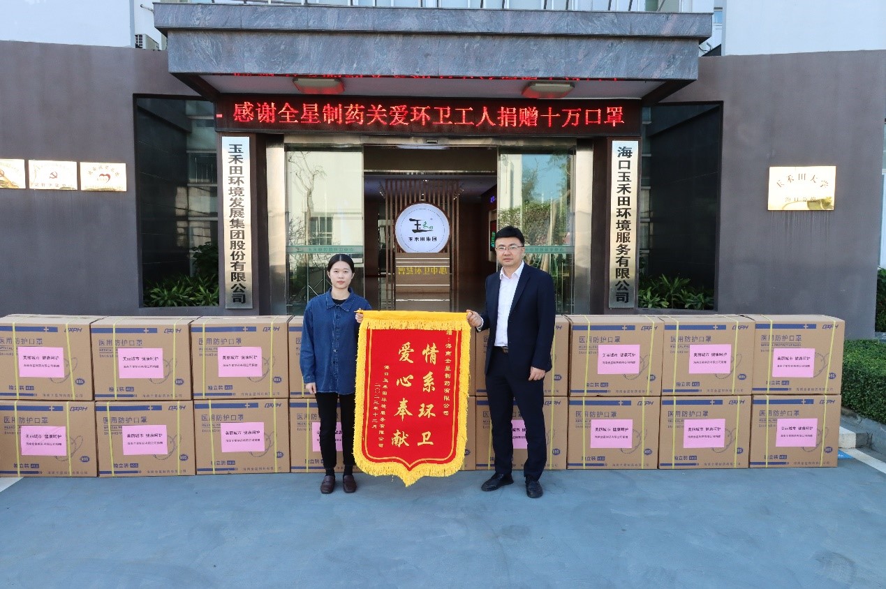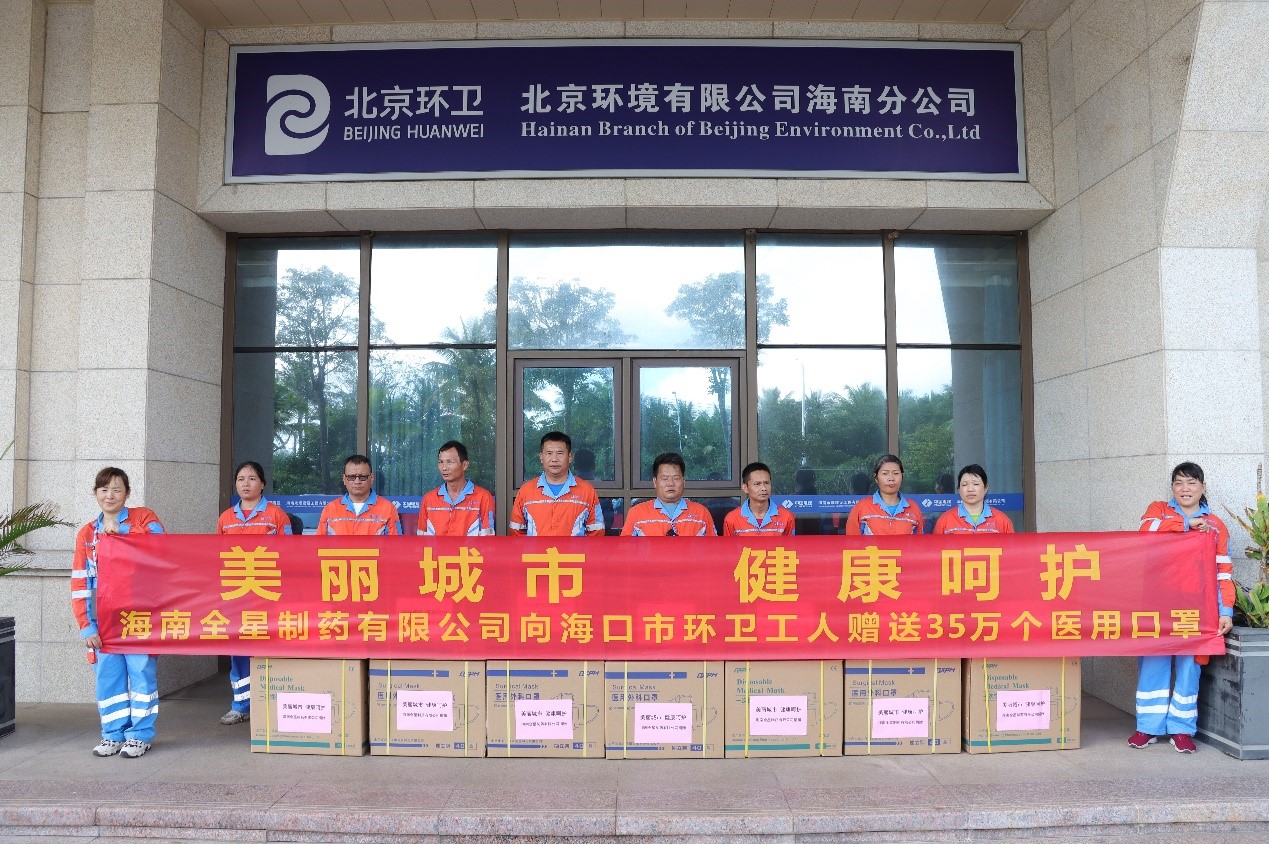 海南全星制藥有限公司向海口市環(huán)衛(wèi)工人贈(zèng)送35萬個(gè)醫(yī)用口罩